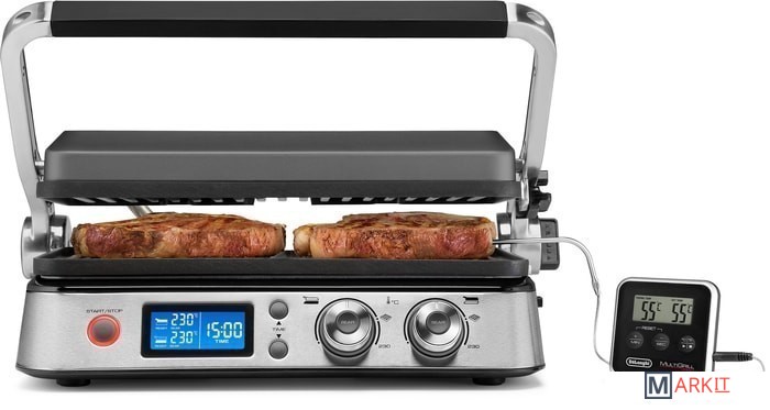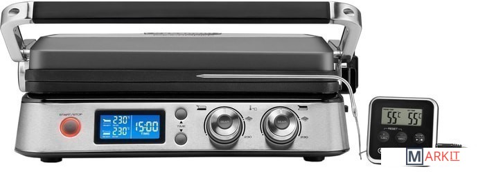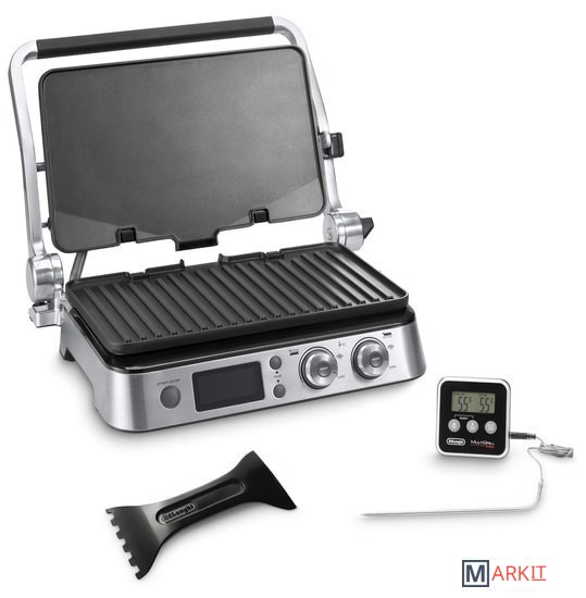 | Комплектация | • 1 плоская пластина• 1 рифленая пластина• термощуп• поддон для сбора жира• лопатка-скребок для чистки |