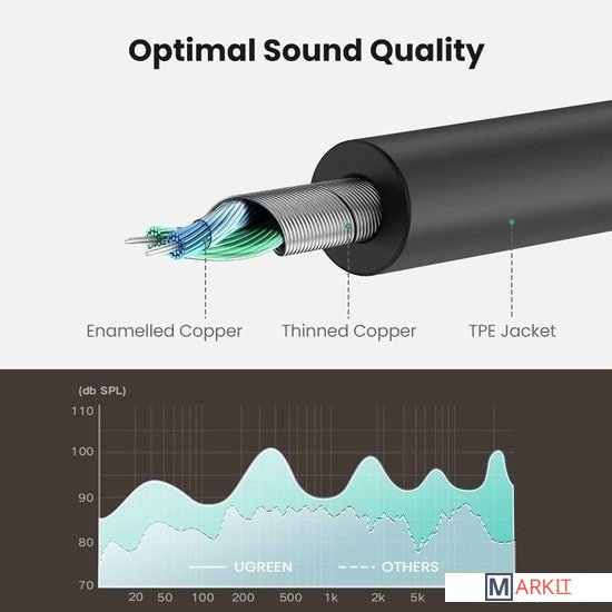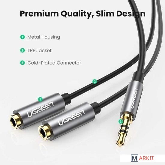 Markit » Кабели, адаптеры, разветвители » Удлинитель Ugreen AV123 3.5 мм - 3.5 мм (0.2 м, черный/серый)