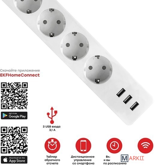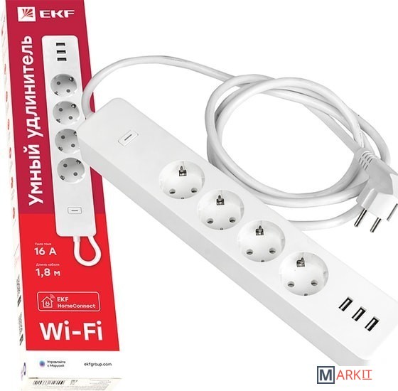 Markit » Стабилизаторы, сетевые фильтры, удлинители » Умный удлинитель EKF Connect Wi-Fi c USB RCE-1-WF